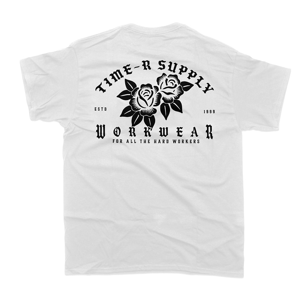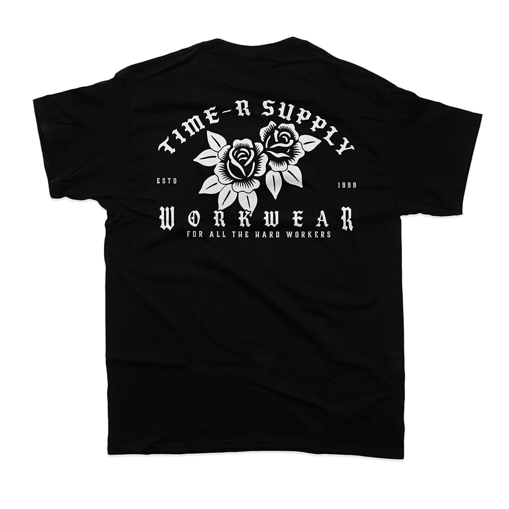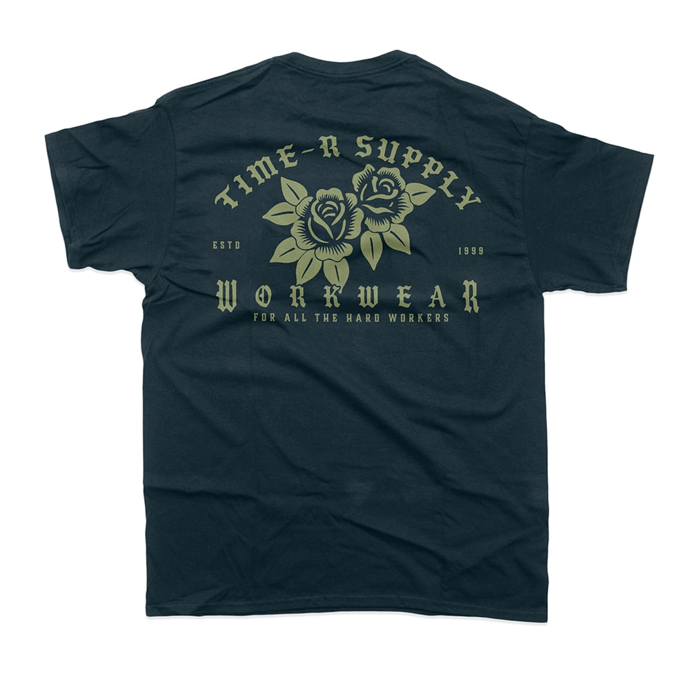 無骨なワークウェアに、あえてのオールドスクールな薔薇。ハードワークやトレーニングの合間に見せる、大人の優しさと色気を演出します。パッと見「トゲがある」と言われがちなあなたにも、心優しいあなたにも捧げるこれだけでキマる本命の1枚。